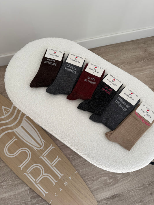 Chaussettes à paillettes « TALENTUEUSE » Beige
