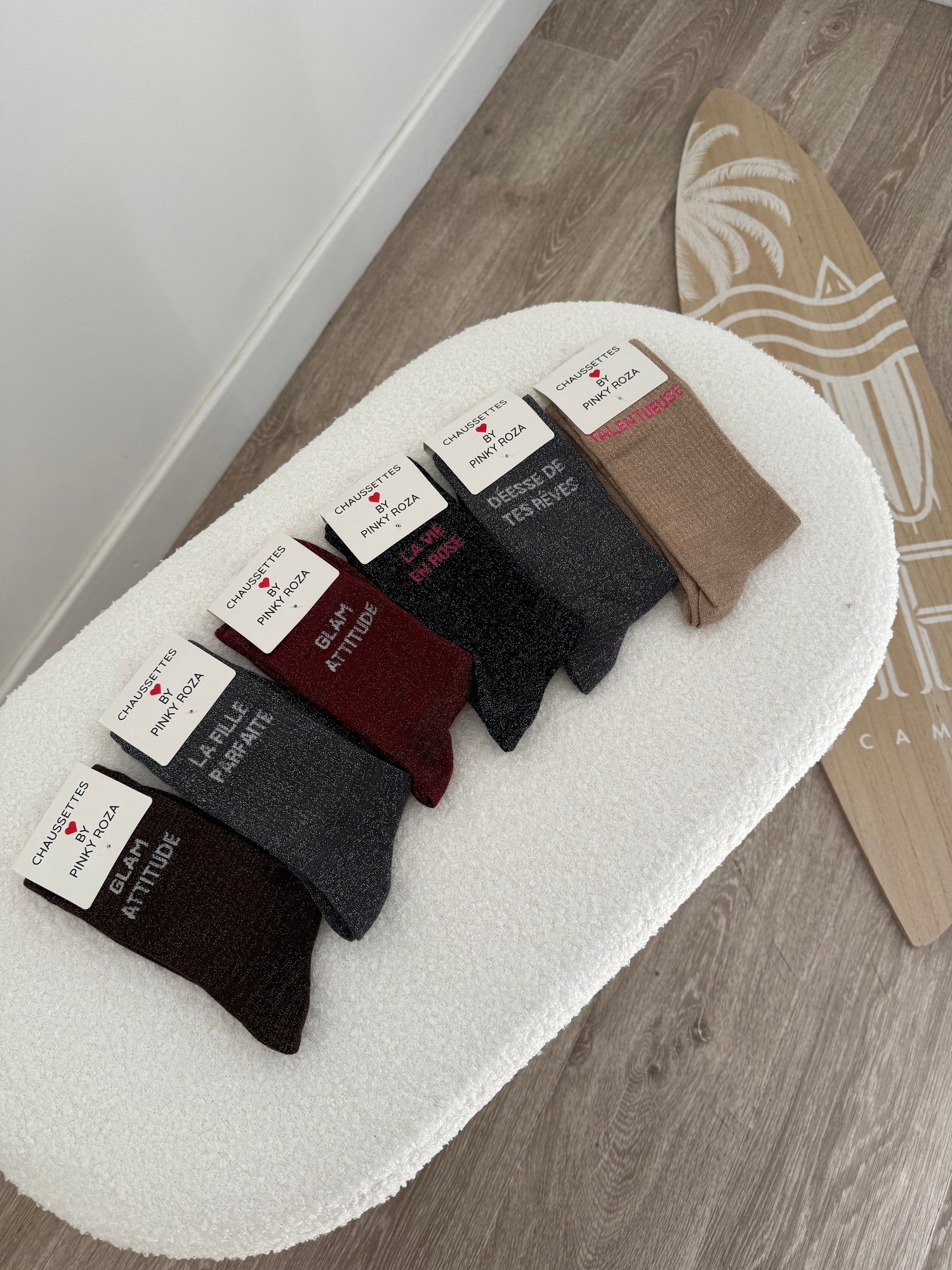 Chaussettes à paillettes « TALENTUEUSE » Beige