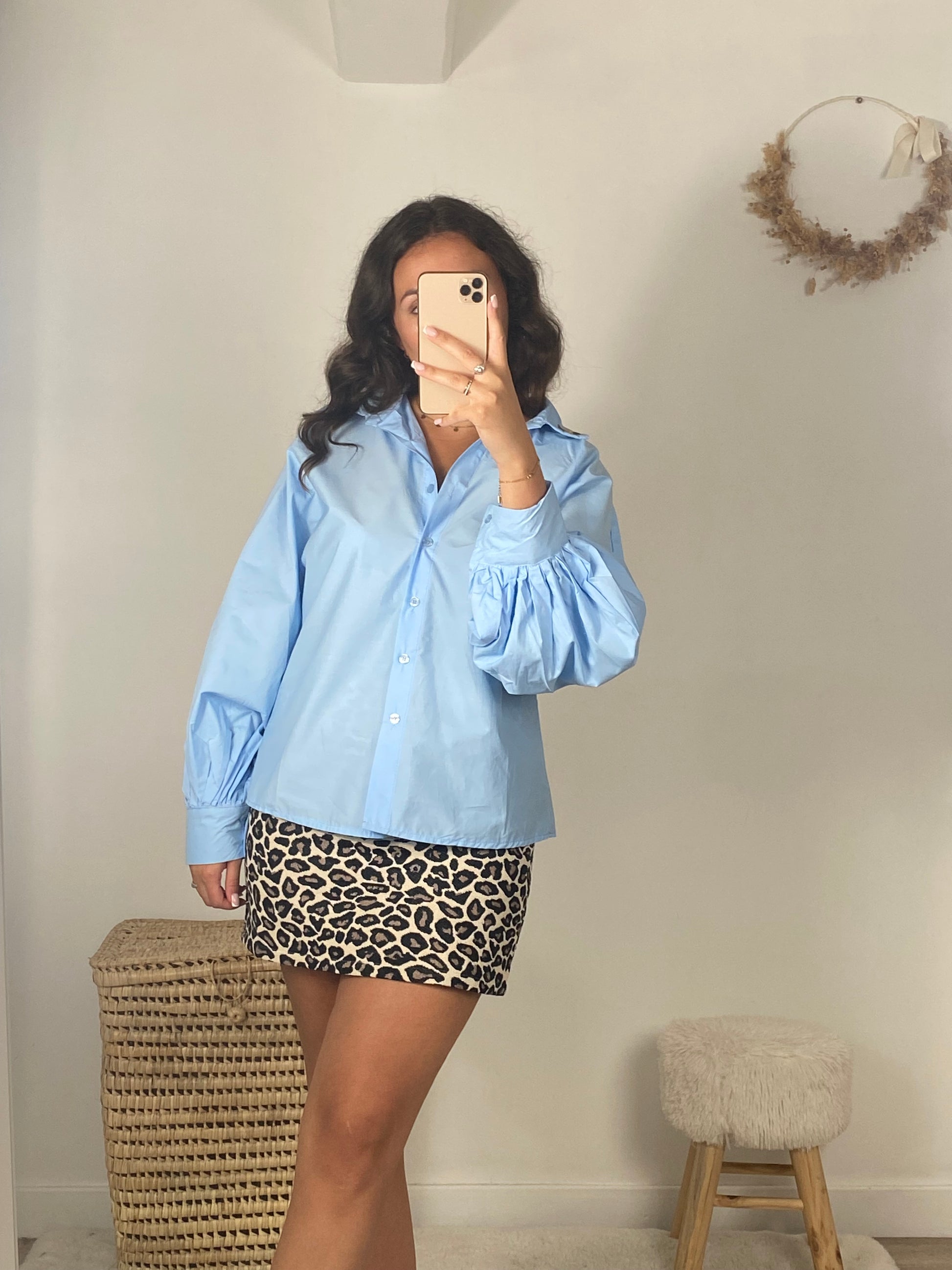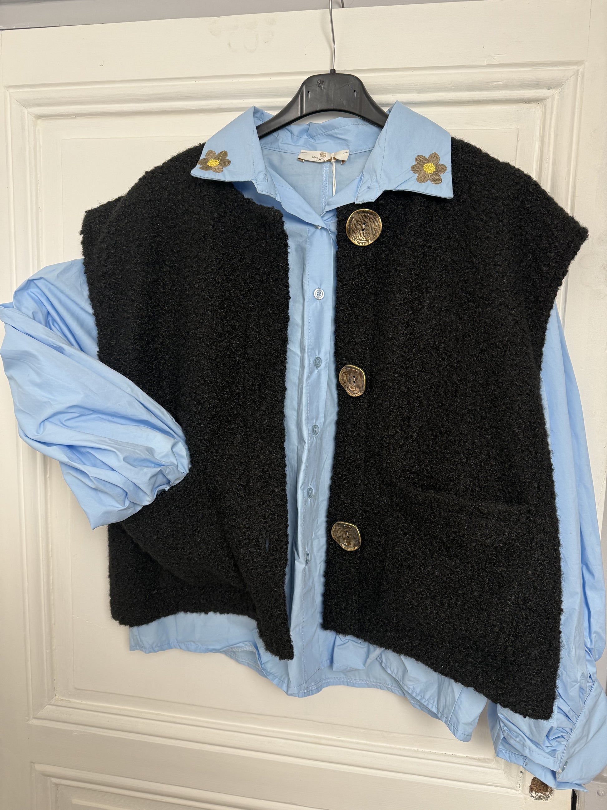- Chemise bleu ciel avec détails de fleurs sur le col