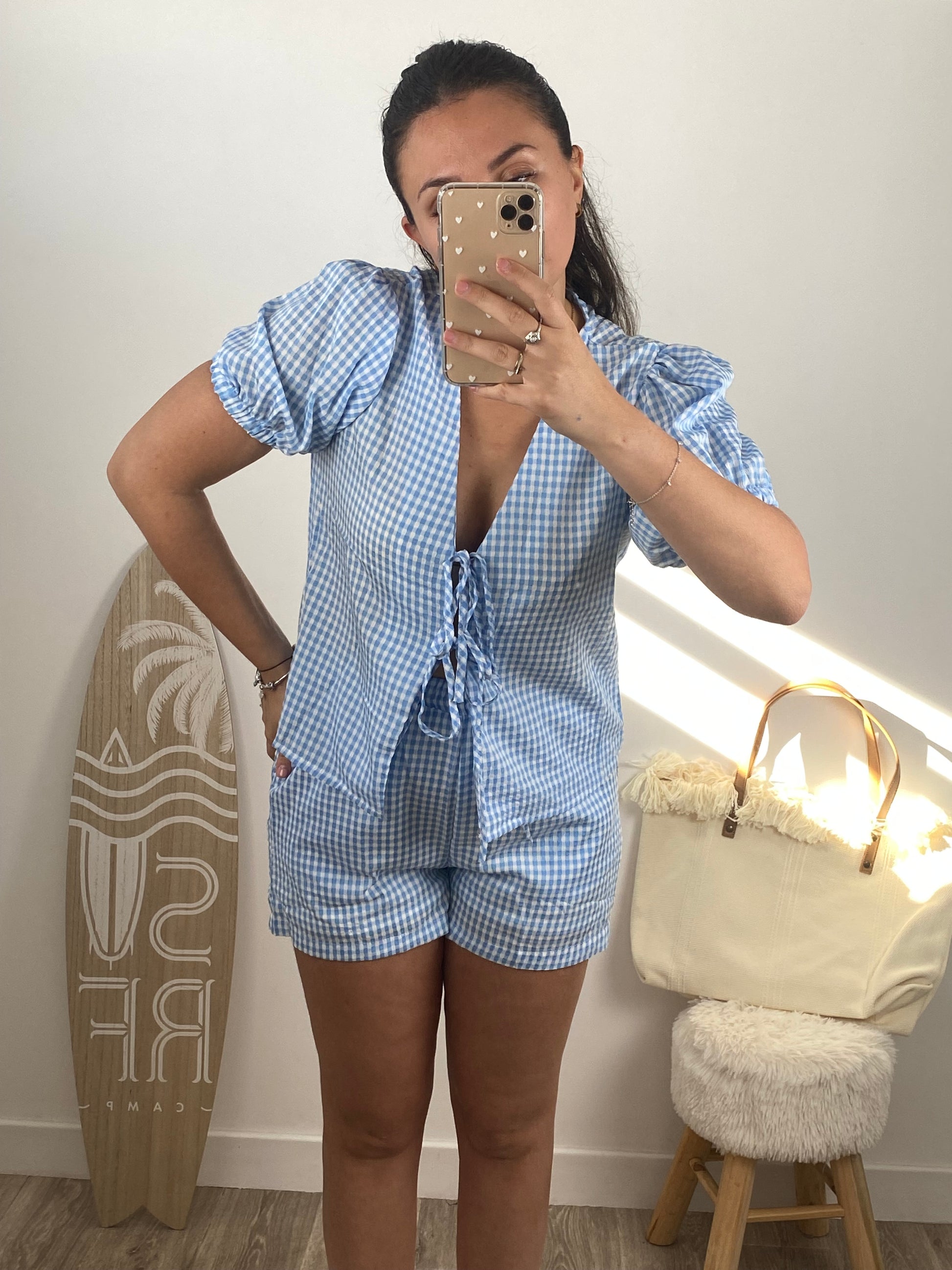 - Ensemble blouse + short à motif vichy (petit carreaux)